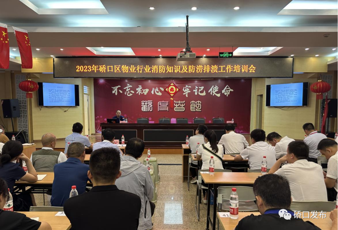 为贯彻落实习近平总书记防汛救灾工作重要指示精神,切实做好全区物业小区安全生产相关工作,保障小区居民生产生活秩序安全、稳定、和谐,提高物业公司对发生火灾、排渍等突发事件的应变能力。近日,区房管局、区水务和湖泊局、区消防救援大队及市物业管理协会硚口区工作委员会联合举办2023年硚口区物业行业消防知识及防涝排渍工作培训。全区专业化住宅小区项目经理161人参加。