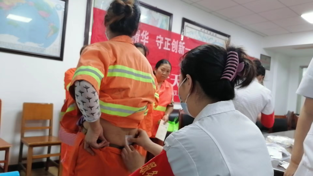 扫地清理垃圾后,我这个腰,特别是到冬天,一受凉就疼,听说三伏贴治疗效果不错,特地过来体验的。这个义诊活动很好,确实是在为我们办实事。
