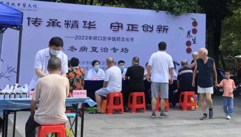 习近平总书记对中医药工作作出重要指示强调“传承精华 守正创新,为建设健康中国贡献力量。”硚口区通过开展中医药文化节,进社区、进企业、进养老院、进学校、进商场,为群众提供便捷优质的中医药服务。同时融入传统文化特色,“元宵节”开展猜中药灯谜专场3场、“三八”妇女节开展妇女保健专场3场、“六一”开展儿童保健专场5场、“春分”开展春季养身专场8场、端午话养生专场 2场,受到群众的一致好评。2023年以来,硚口区已经举办中医药文化节68场,推广中医药适宜技术十多种,科普辨识中药材近百种,发放宣传折页近万份,现场服务居民两万余人。