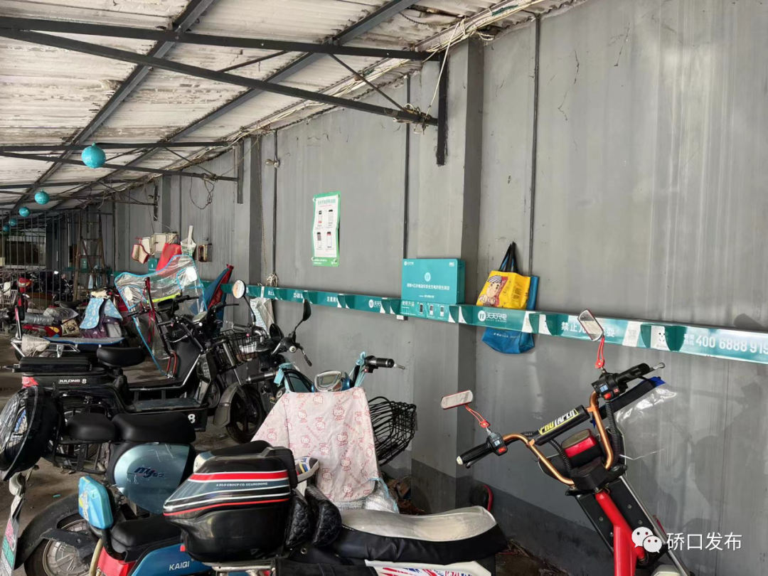 近日,汉水桥街道解放社区社区庭院内,社区党委牵头,辖区单位共建的两个电动车车停放点完成“微改造”,不少居民从此告别“飞线”充电。