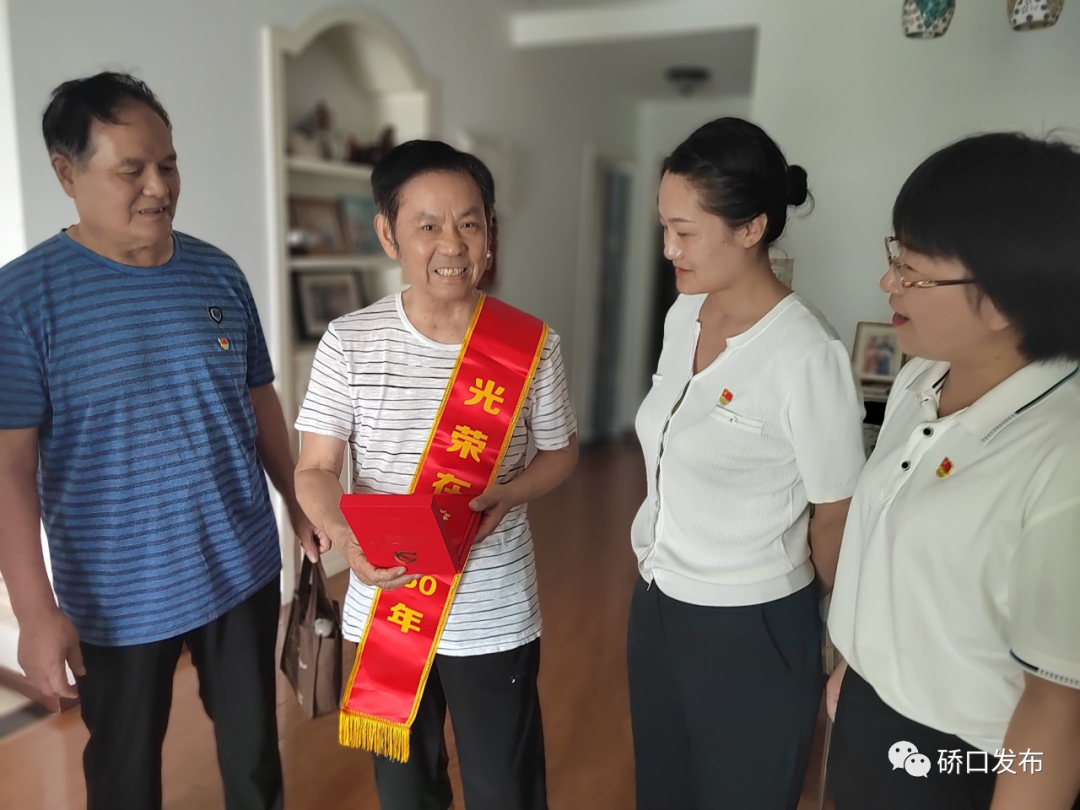 会后,社区党委书记和支部书记一行等到生病党员家中走访探望,为老党员颁发在党50年勋章,叮嘱老党员注意身体,继续做好党员排头兵,做好党员先锋表率。