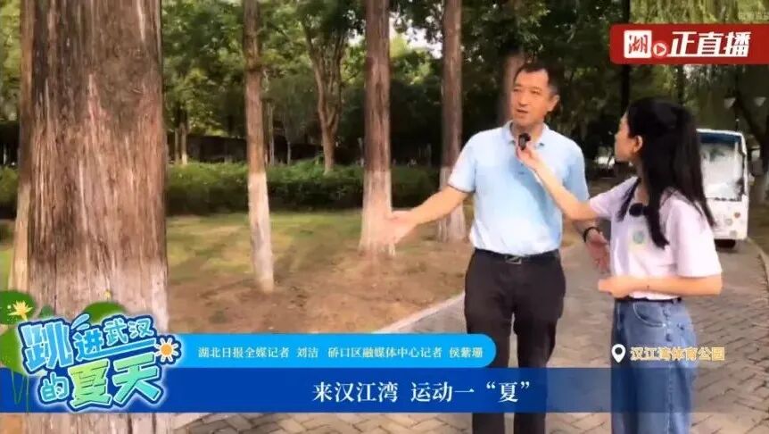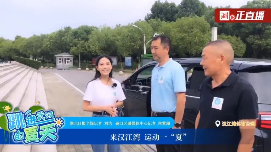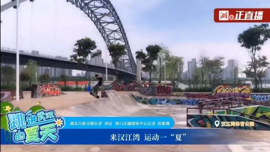 7月30日,湖北日报联合硚口区等15个区级融媒体中心进行了一场长达7小时的直播——《“跳”进武汉的夏天》,开启2023“云游武汉”第二季。下午四点多钟,“云游武汉”来到硚口区汉江湾体育公园,运动一“夏”,全情演绎了一场全民健身的激情与浪漫。