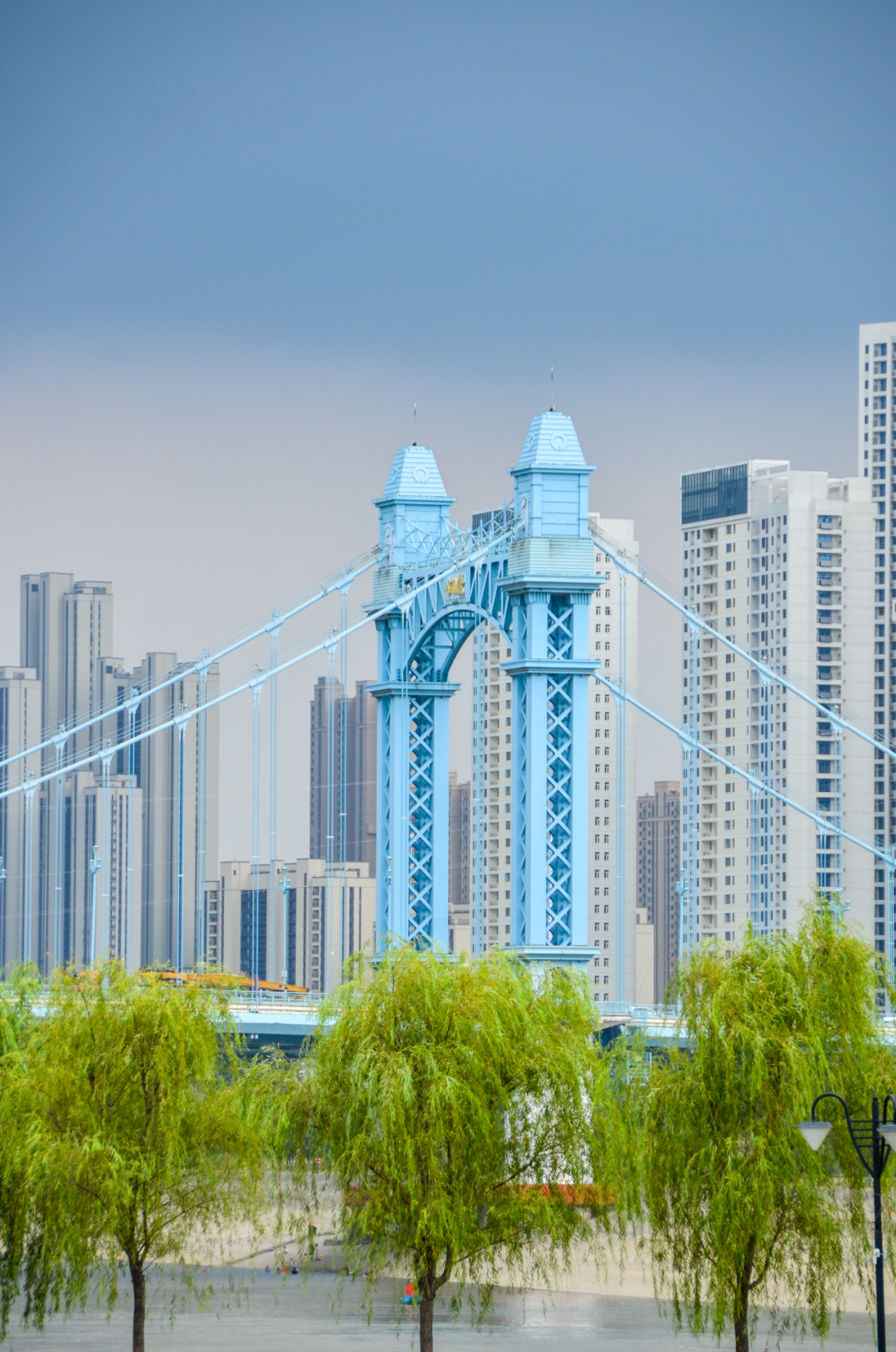 在硚口汉江湾江滩四期,凭借美貌“出圈”的古田桥就近在眼前。淡淡的普鲁士蓝梦幻十足,怎么拍都好看。