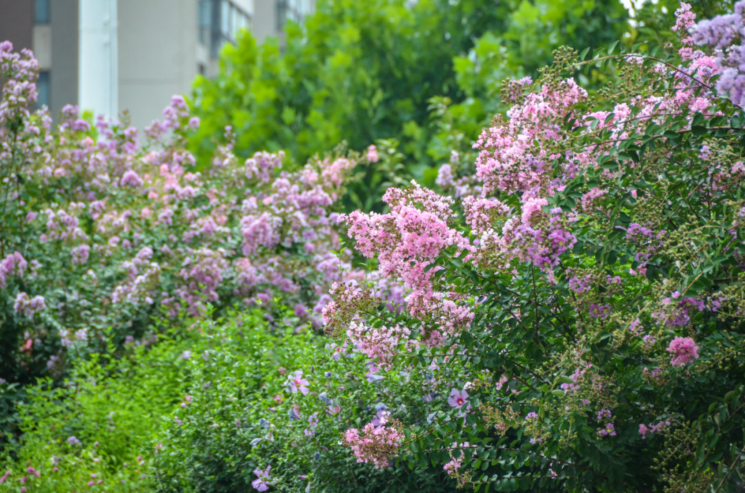 随着热力的渐强,硚口汉江湾江滩已切换至“夏日模式”,树木穿上葱茏的绿装,紫薇花成团成簇盛开,园内美景令人赏心悦目。