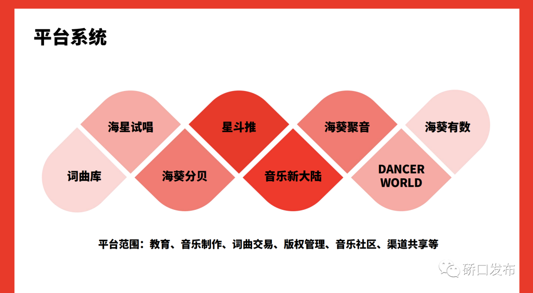 以音乐版权为基础,优质艺人助力与孵化,综艺、影视、自制演出、海外平台合作......海葵音乐集团建立了独特且高效的音乐工业生产体系,形成一个互联网化的音乐生态圈。