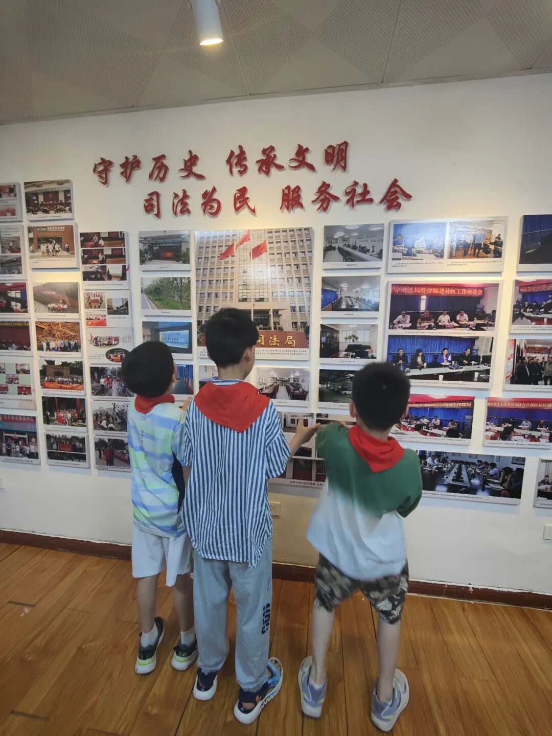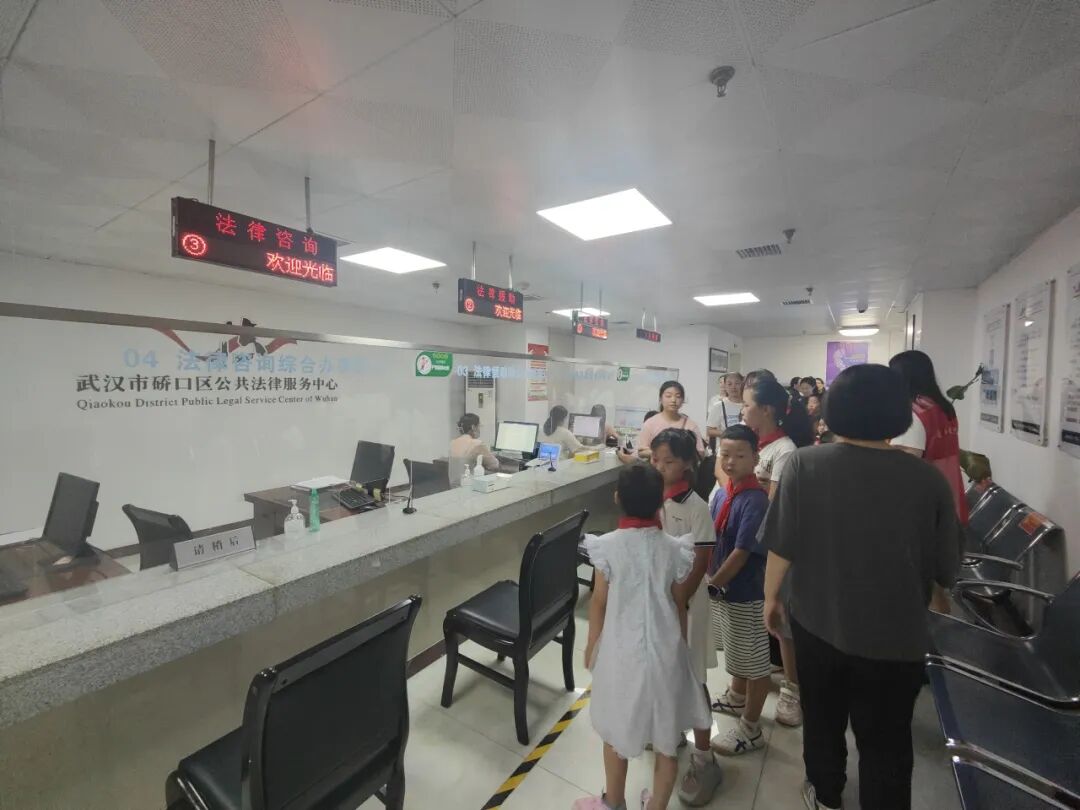 随后,在讲解员的引导下,孩子们参观了硚口区司法局。在硚口区公共法律服务中心,孩子们亲身体验了法律援助申请的办理过程,并就感兴趣的法律问题咨询了值班律师;在荣誉室,孩子们在一块块奖牌和展板中了解司法行政工作的发展历程;在图书馆,孩子们纷纷被琳琅满目的书籍吸引,主动坐下来阅读图书,在心里默默种下了法治的种子;在社区矫正工作管理局,孩子们在工作人员的带领下参观了宣告室和心理咨询室,了解了入矫宣告和心理辅导等工作环节,强化了尊法、学法、守法、用法意识。