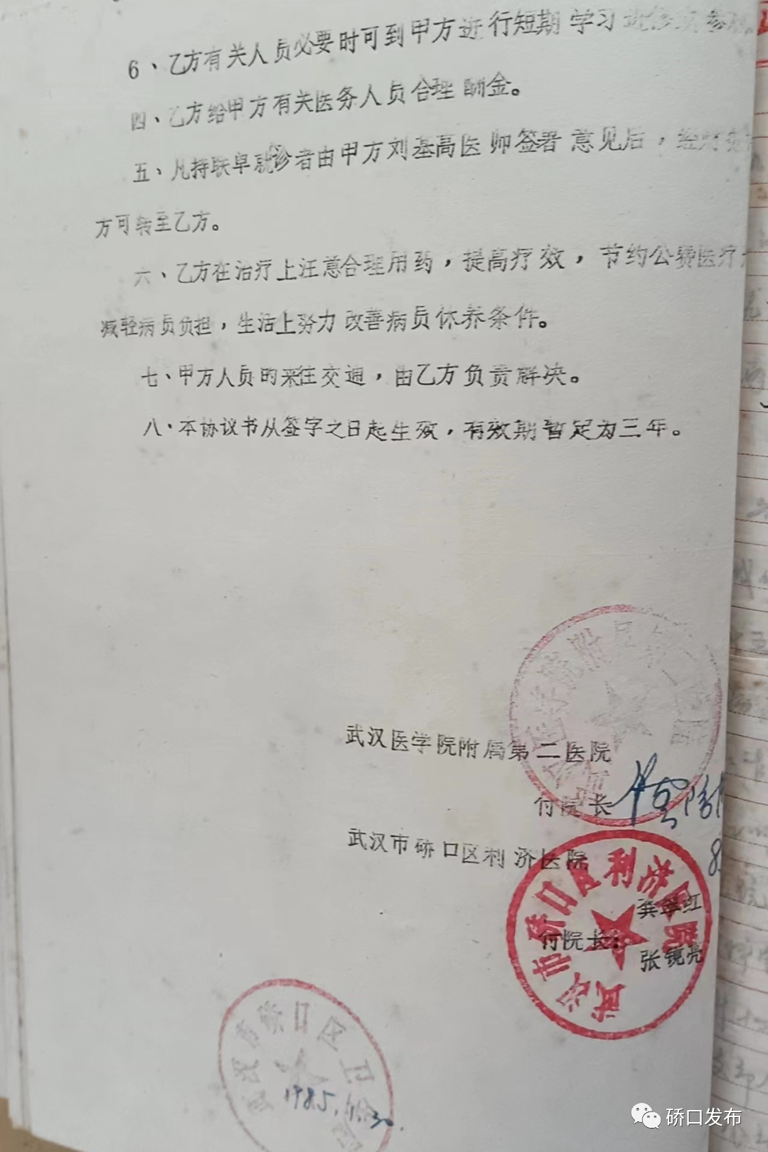 ▲与武医二院(现同济医院)签订《技术挂钩协议书》
