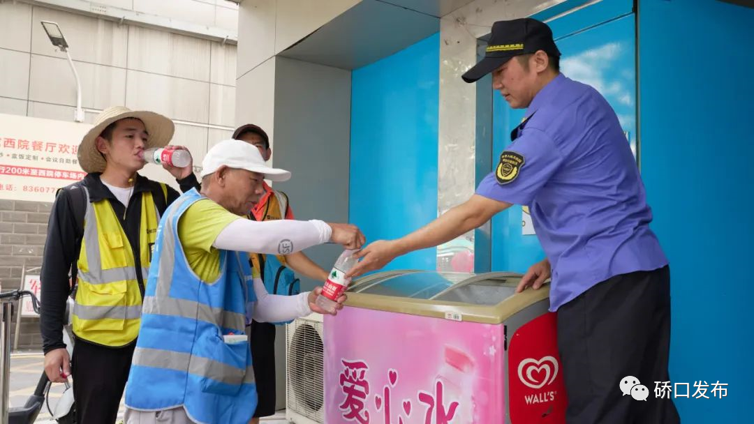 在宝丰街先行示范下,硚口区各街道综合执法中心进一步整合社会资源,纷纷与辖区商户共同缔造夏日清凉,“爱心冰箱”如星星之火,燎原于辖区各路段,还有许多临街单位和门店,腾出店面内紧挨空调的一角,摆上凳椅,备上直饮水机和纸杯,让户外工作者“渴有所喝,累有所歇”,在身心清凉的同时,留下一个个温暖瞬间,传递向善向上的社会风尚,不断提升了户外工作者的幸福感、获得感。