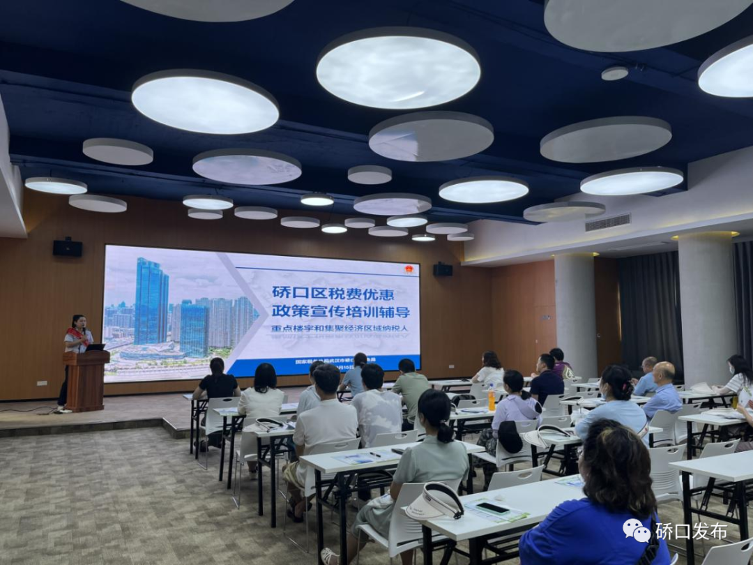 为进一步提升纳税人的税费优惠政策知晓度,推动税费优惠政策落实落地,8月15日上午,硚口区税务局、硚口区企业服务中心开展了重点楼宇和集聚经济区域纳税人税费优惠政策宣传培训辅导,汉正街道近50家重点楼宇和集聚经济区域的民营企业负责人参与其中。