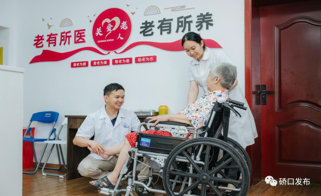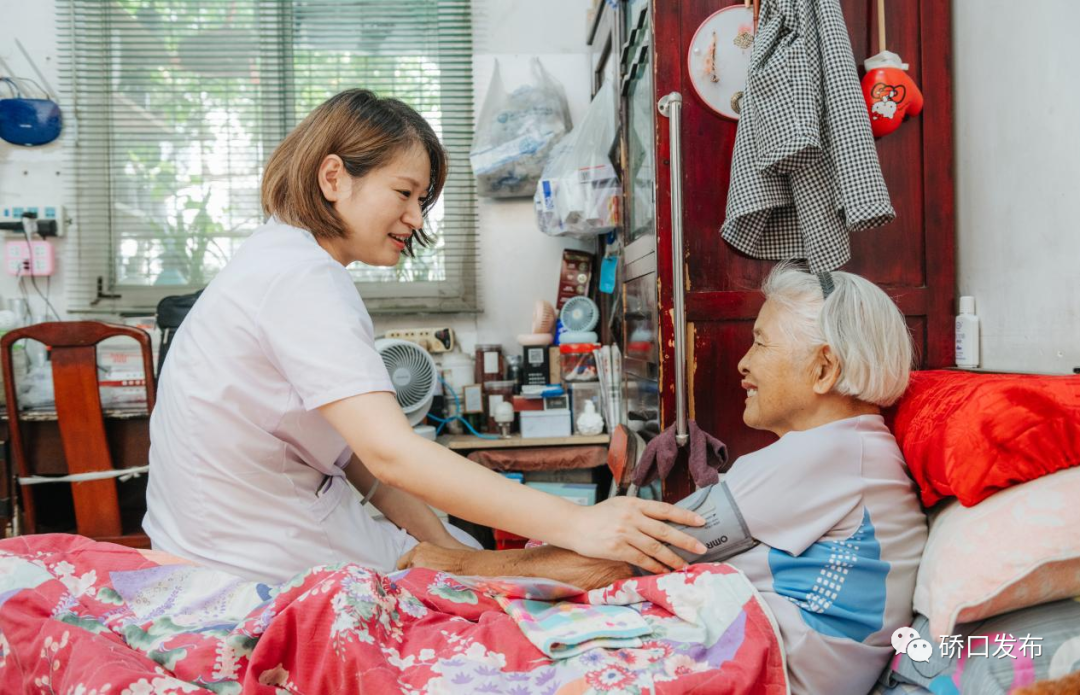 六角亭街社区卫生服务中心张静医生在共同缔造示范小区——荣东社区为辖区老人提供医养结合康复服务。