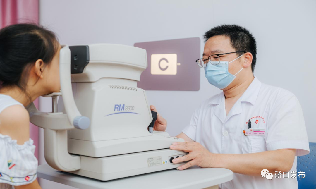 区妇幼保健院儿童保健部眼科医生汪岭开展青少年近视综合防控追踪随访。