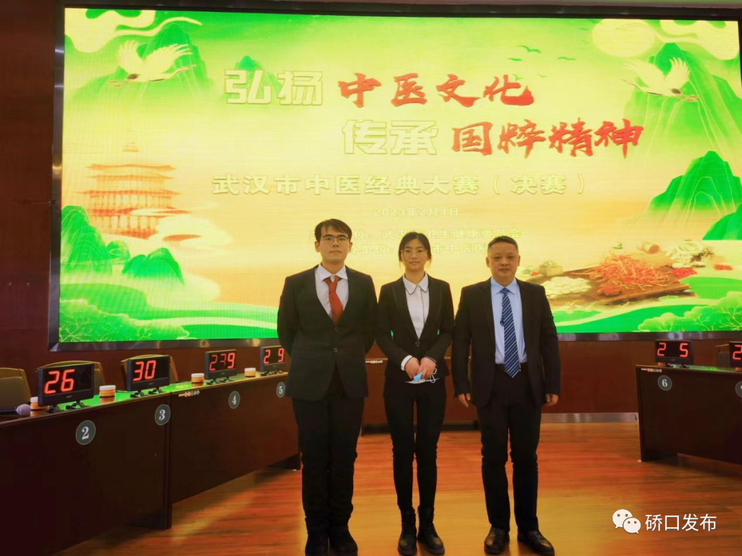 汉中街社区卫生服务中心硕士研究生李昊医师在2022年武汉市中医经典大赛决赛中取得第一名的成绩(左1)。