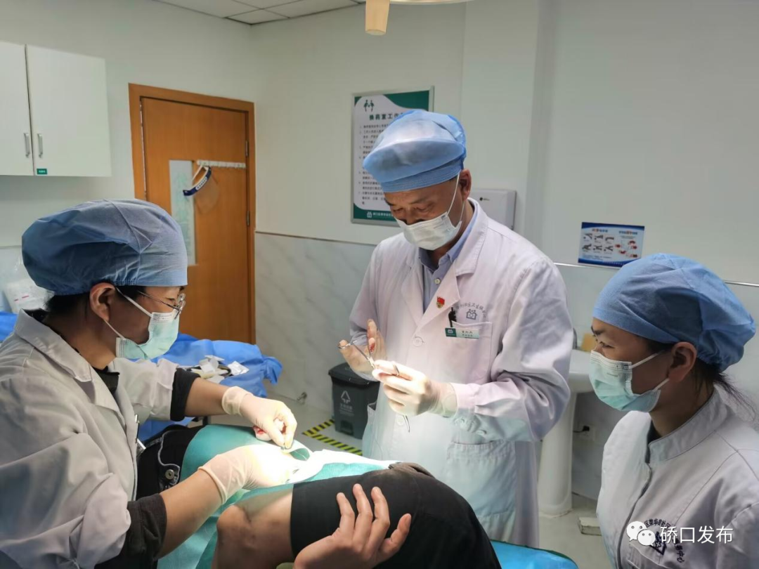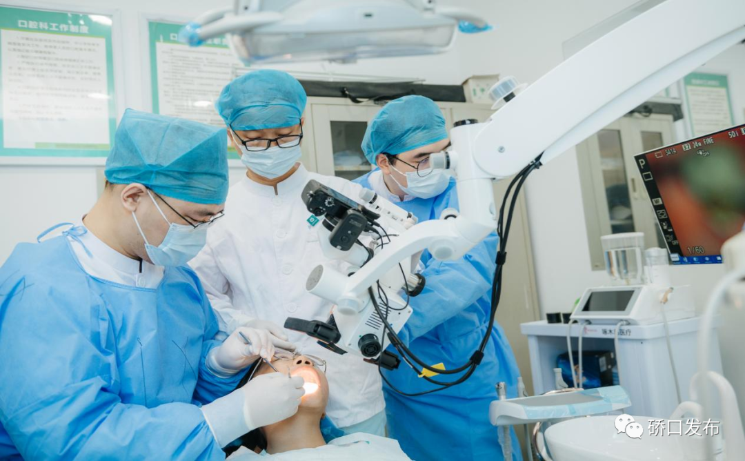 荣华街社区卫生服务中心口腔科主任、副主任医师曾汉桥携其团队在硚口区口腔疾病防治基地为患者进行口腔微创治疗。