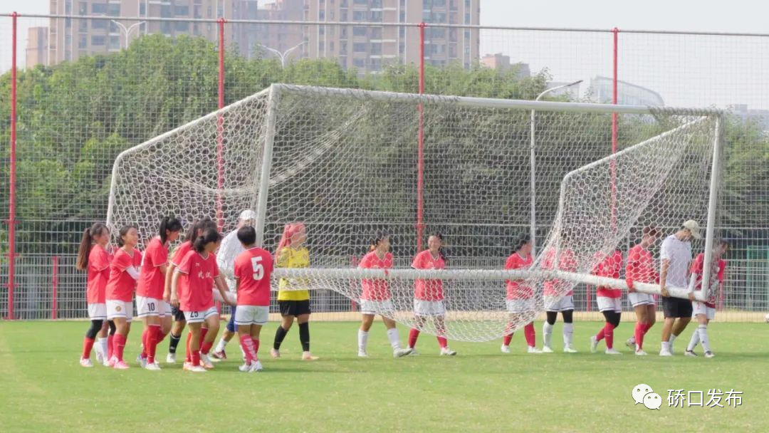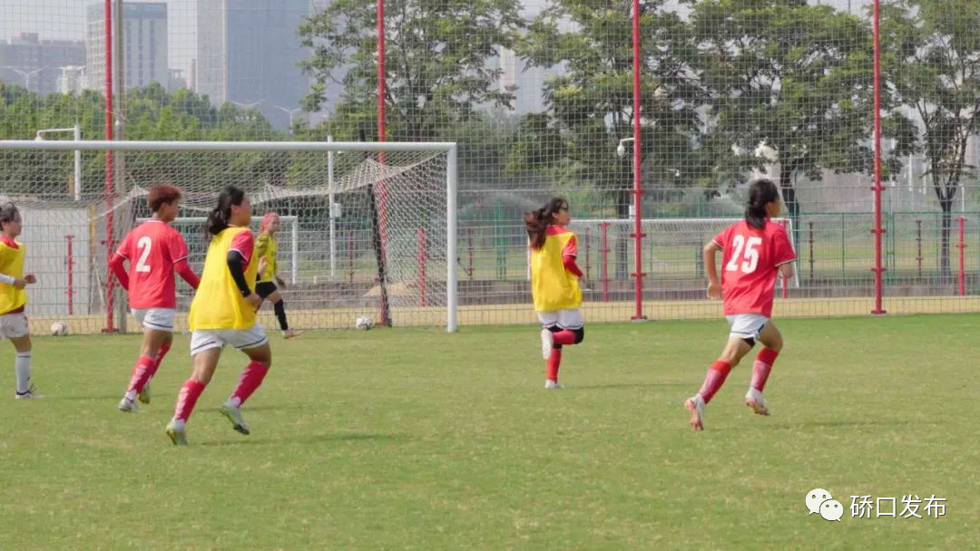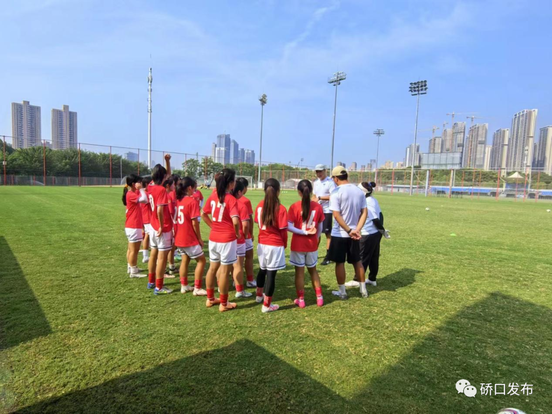 酷暑下,一群身着红色球衣的女孩们正在绿茵场上驰骋飞奔,这是硚口区的女足球员们正在为接下来的全国第一届学生(青年)运动会女足校园组认真备战。训练从每天上午9点开始,女孩们没有表现出一丝怕苦厌训的情绪,每个人的训练热情都十分高涨。