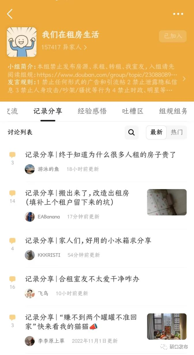 这样的吐槽和求助帖,在豆瓣平台“我们在租房生活”小组里随处可见。该小组已经聚集了15万余人,大多是95后大学毕业生、年轻的小情侣和打工人。