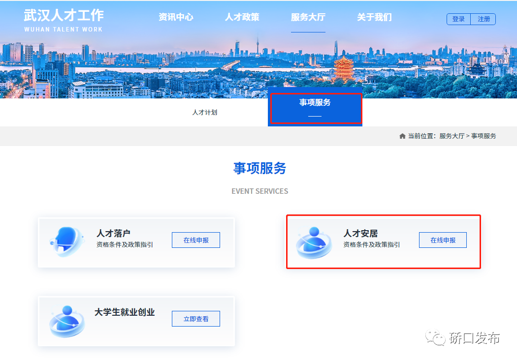 武汉人才工作网(http://www.whrcgz.gov.cn/)——服务大厅——事项服务——人才安居——大学毕业生在线申报