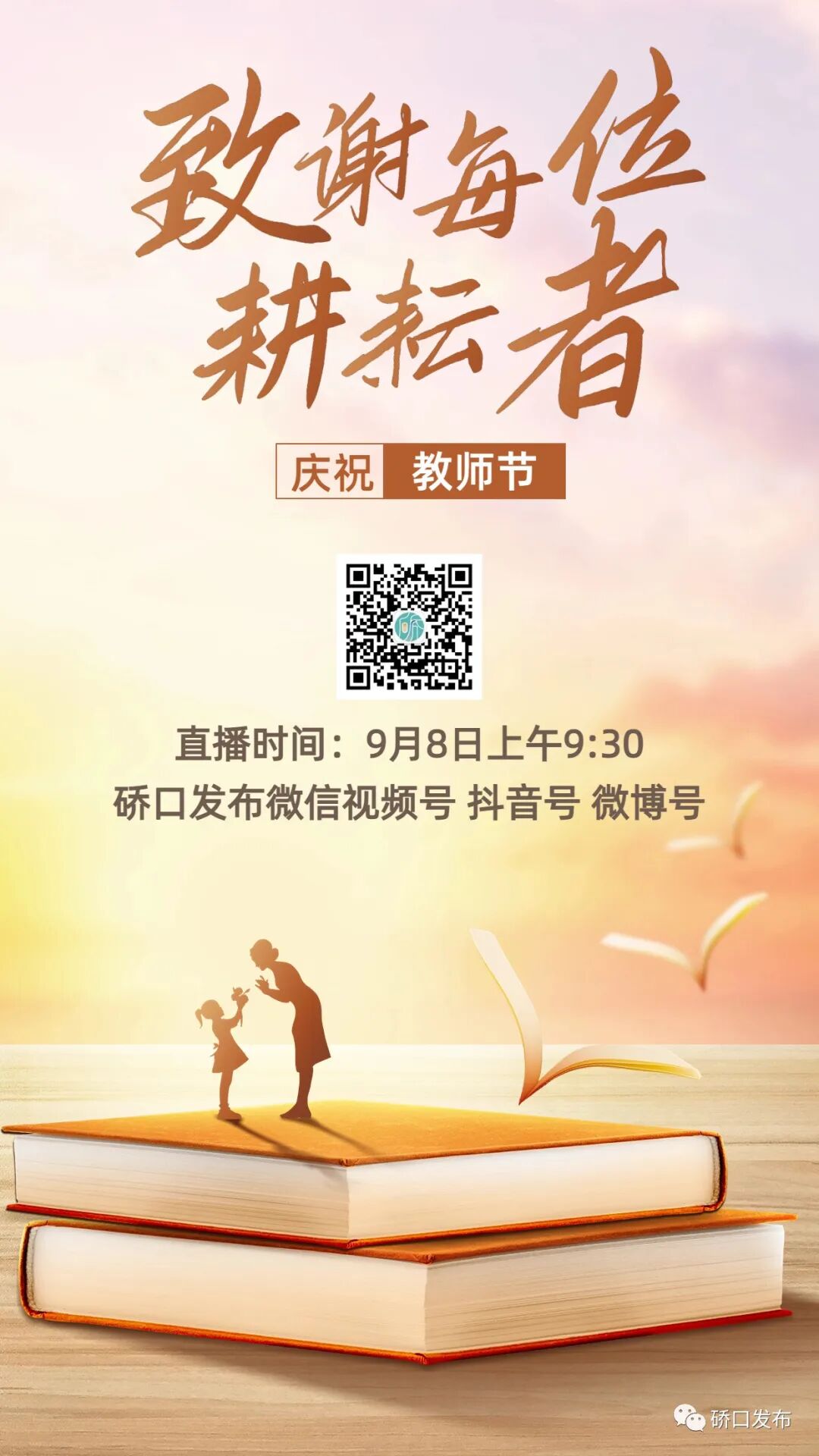 “躬耕教坛 强区有我”,在全国第39个教师节来临之际,为大力弘扬广大教师爱岗敬业、无私奉献的优秀品质,在全区营造尊师重教的良好氛围,硚口区教育局将于明天上午9点30分,举行教师节庆祝表彰活动。