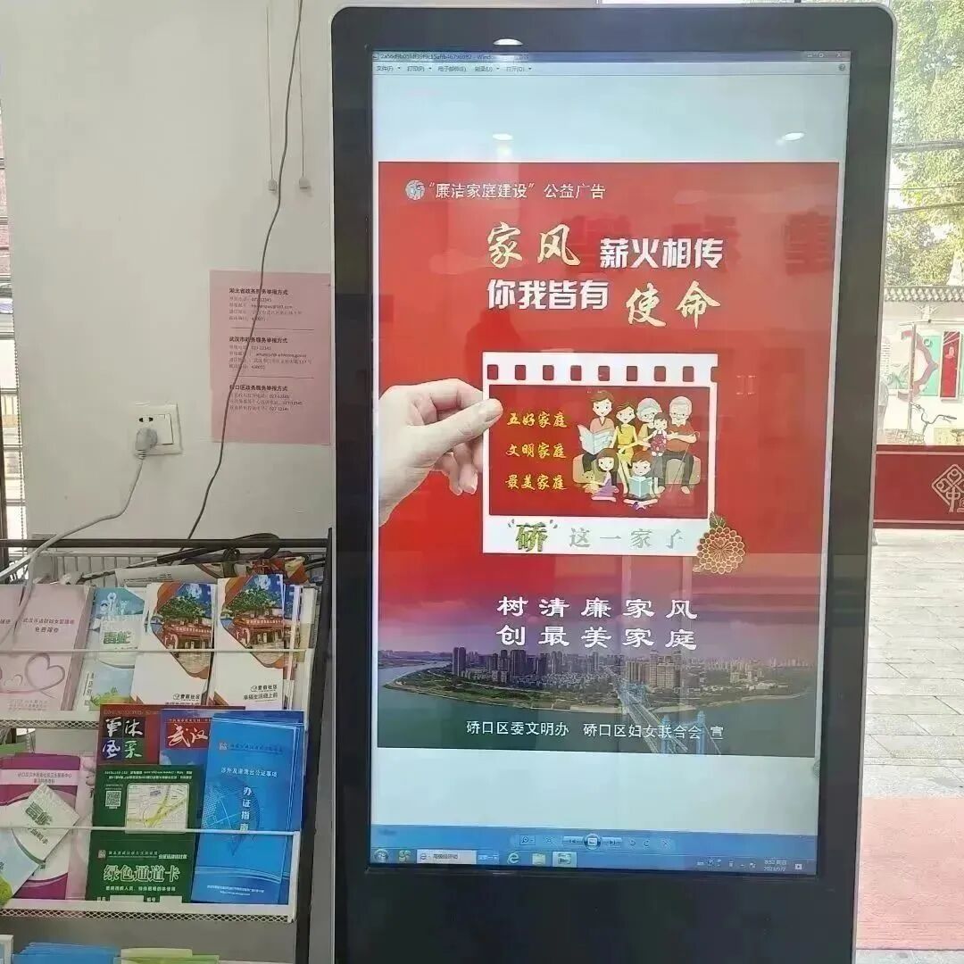区委宣传部依托新时代文明实践中心、所、站搭建清廉教育平台,打造“楷模直播间”,开展“党的声音进万家”教育宣传活动,在地铁3号线宗关站建成硚口区“武汉文明空间”,展示硚口精神文明和家风成果;线上运用“硚口发布”融媒体平台打造“指尖清廉课堂”,传递清廉模范家庭“正能量”。制作原创清廉家庭建设公益广告,利用户外电子显示屏、社区宣传栏、文明单位等阵地广泛传播。