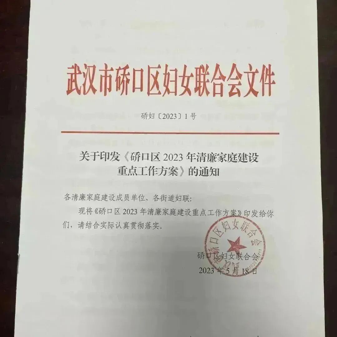 同时联合区委文明办在硚口公园举办“硚见幸福”首届硚口区家庭文化节暨家风家教宣传活动,联合区委直属机关工委举办硚口区“树清廉家风 创最美家庭”机关宣传教育活动,联合韩家墩街道开展“清廉家风润硚口 美好生活大家创”家风家训分享座谈活动。