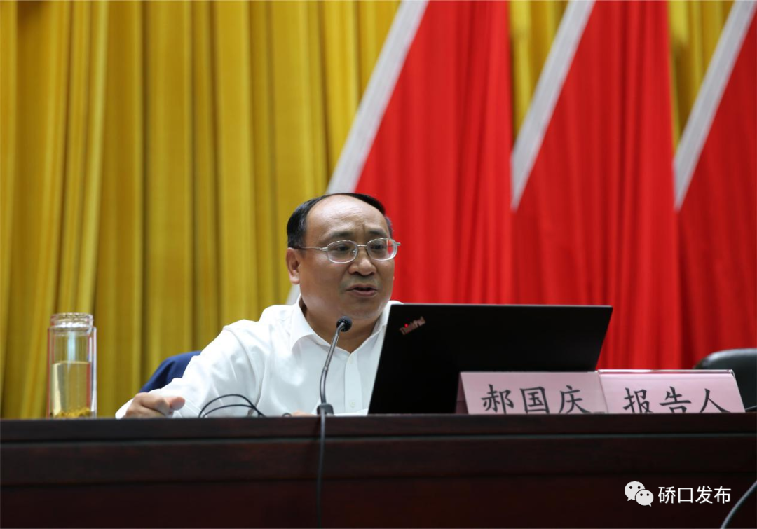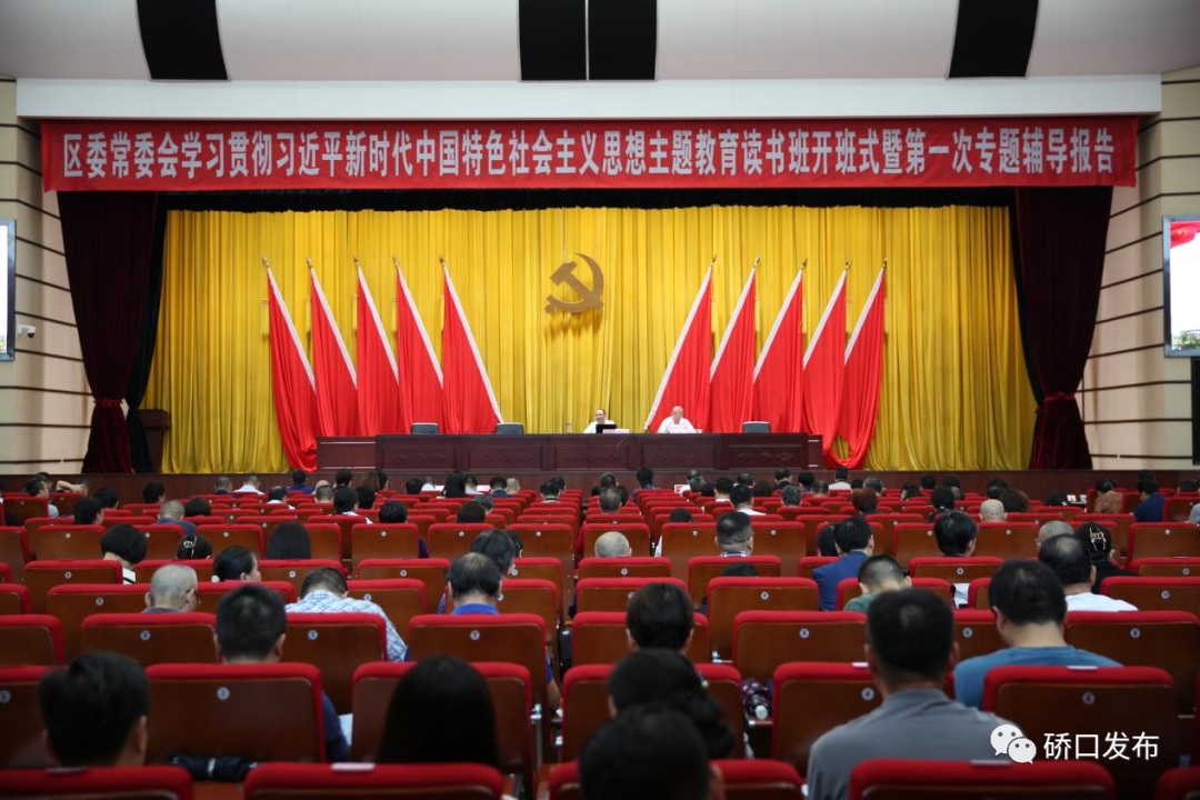 9月21日上午,硚口区委常委会学习贯彻习近平新时代中国特色社会主义思想主题教育读书班开班式暨第一次专题辅导报告举行。区委书记周耕主持开班式。市委第七巡回督导组成员、长江新区纪检监察工委副书记谷斌到会指导。