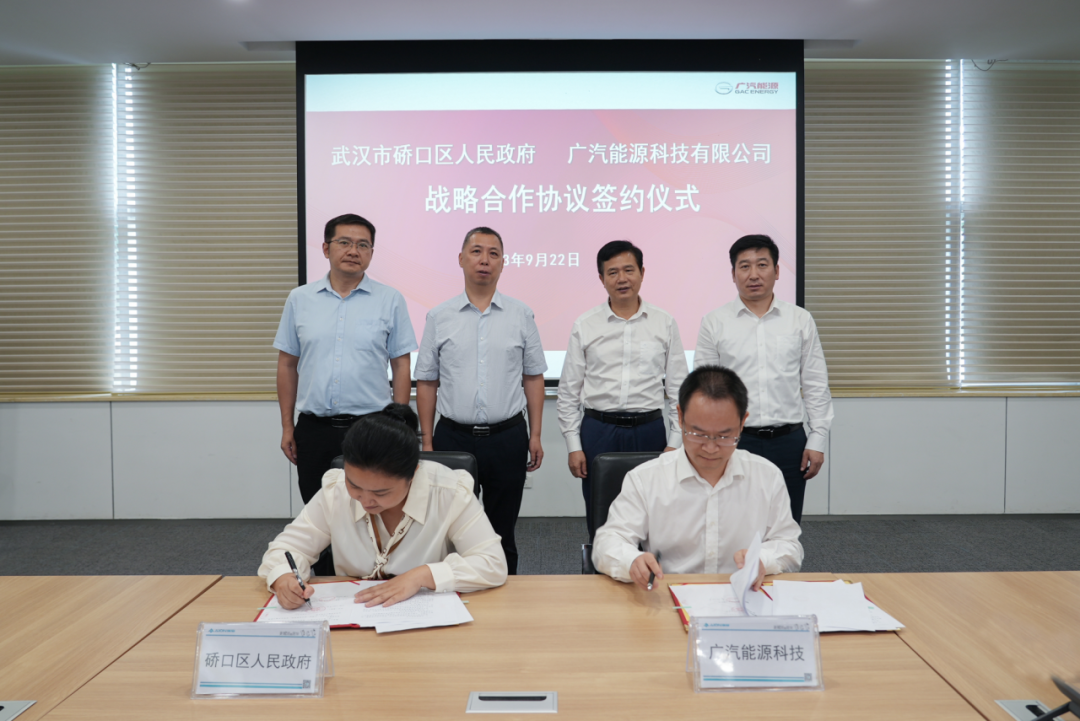 近日,硚口区人民政府与广汽能源科技有限公司签署战略合作协议。硚口区政府区长苏海峰,广汽埃安总经理古惠南出席签约仪式。