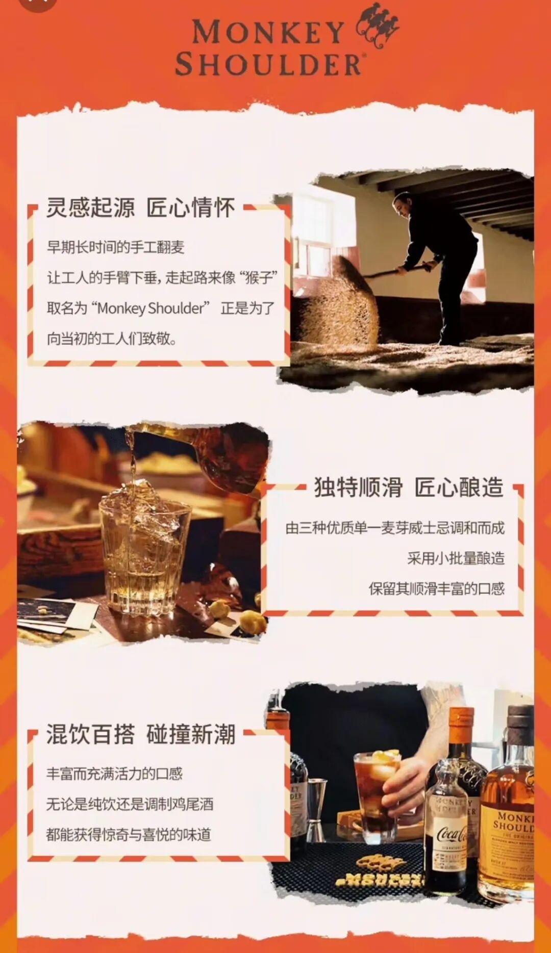 三只猴子调和麦芽威士忌,采用小批量酿造,保留其顺滑丰富口感。