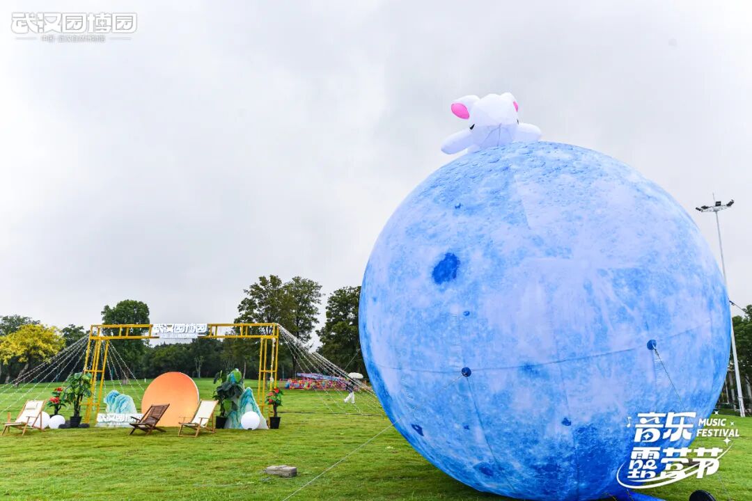 兔子装置、多巴胺大门、“去露营、今天躺平、数星星、森呼吸”标语、草坪大月亮、巨型红色爱心……