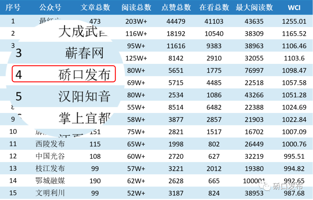 “硚口发布”自今年4月首次闯入top5以来,在全省微信排行榜的排位中始终保前5名。我们始终保持围绕中心,服务大局,发布权威信息,讲述硚口好故事,传播好硚口声音,传递硚口正能量,致力于贴近百姓,打造群众喜爱的官方权威平台。