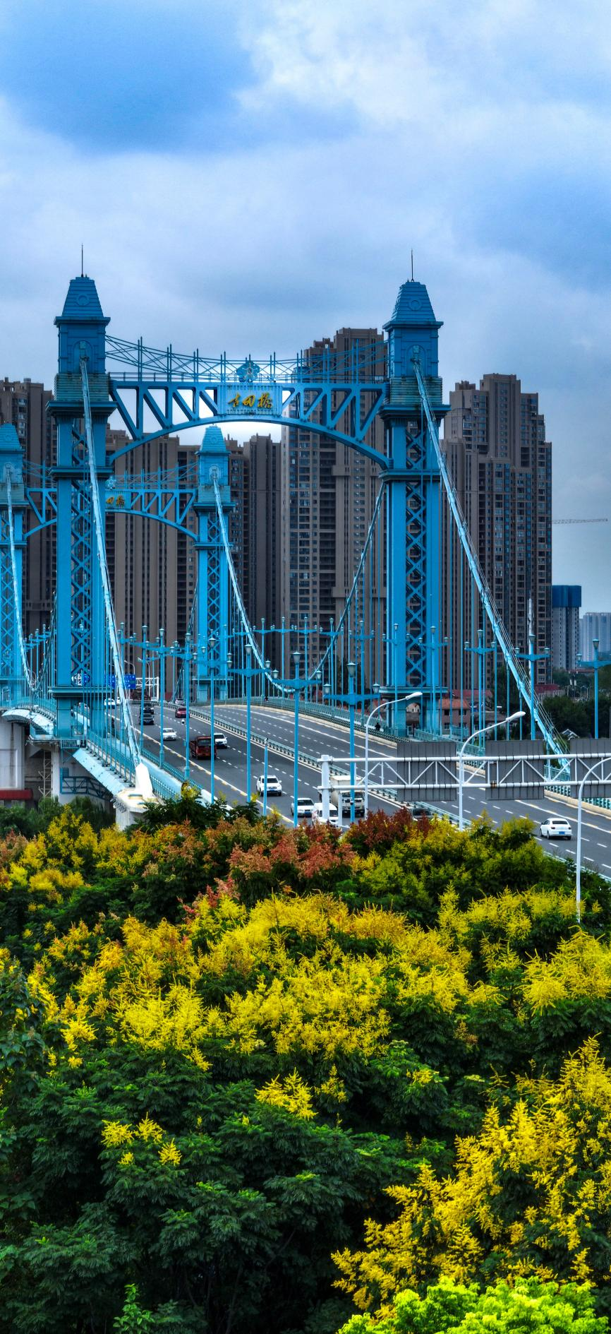 ▲《古田桥蓝色与栾树黄花彰显美感》贠有名摄