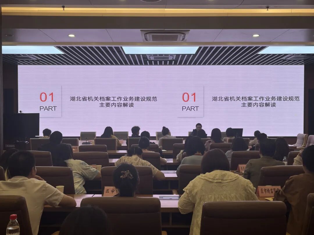 加强档案资源建设。培训现场演示电子公文制发和档案馆室一体化平台操作流程,指导各单位落实电子档案“来源可靠、程序规范、要素合规、安全可用”要求,推动数字档案资源建设;讲解《政务服务电子文件归档和电子档案管理办法》《湖北省机关档案工作业务建设规范》《湖北省档案工作目标管理考评办法》,提升档案业务建设规范化水平。
