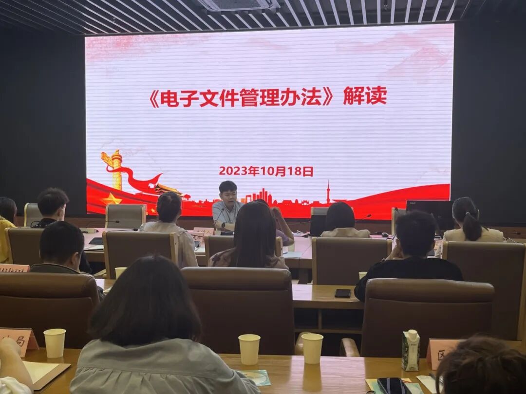 推进电子文件管理。电子文件具有凭证、资产和查考价值,与传统载体文件具有同等效力。电子文件管理工作应当遵循全程管理、规范标准、高效利用、安全可控原则。培训班重点解读《电子文件管理办法》,指导各单位在信息化工作中统筹推进电子文件管理,依托电子文件逐步实现相关业务全程电子化单轨运行。