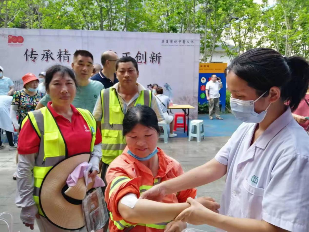 汉中中心党支部还连续3年义诊服务“城市美容师”环卫工人,累计免费敷贴10000余付,服务两千余人次;先后送医送药送敷贴到江堤、养老院、工地、机关、学校。
