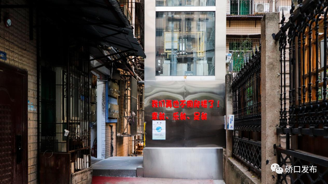 走进幸乐社区华通花园小区,一栋13层高的外立式电梯吸引了我们的注意,电梯外侧的一块牌子上写着:我们再也不用爬楼了!“这是小区在2021年新建成运行的一座迷你电梯。”社区干事胡国平介绍道。