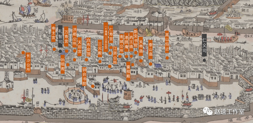 ▲ 数量惊人的会馆(底图为1876年武汉三镇图历史地图)