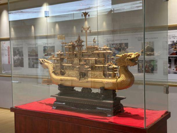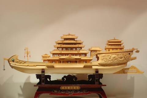▲木雕船模《镇海宝舟》