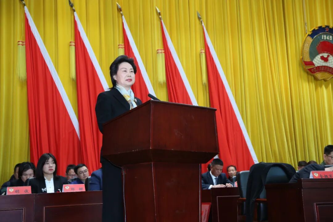 邹春燕在闭幕大会上讲话。她指出,这次会议是在全面贯彻落实党的二十大精神,在中国式现代化新征程中加快实现硚口全面复兴的关键时刻所召开的一次重要会议。大会期间,各位委员和列席会议的同志紧紧围绕全区经济社会发展大局,以高度的政治自觉、饱满的履职热情,通过提案、大会发言、联组讨论、分组讨论等形式发肺腑之声、建务实之言、献创新之策、聚奋斗之力。会议开得圆满、成功,充分发挥了人民政协作为专门协商机构的重要作用,生动体现了社会主义民主政治的生机与活力。