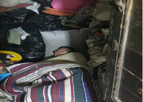 今年70岁的周爹爹,自今年8月起开始租用利济社区创新巷7号1楼作为仓库使用。但是通过社区巡查和附近居民反馈,老人独身一人早出晚归,以拾荒为生,屋内杂乱堆放着布匹等易燃杂物,老人半夜回来就睡在杂物上。这对老人和周边居民都构成了极大的消防隐患。社区工作人员联合管段民警多次上门跟周爹爹做思想工作,告知其租用的仓库属于明令禁止的三合一场所,不得用于居住,并下达消防责任书责令整改。社区同时也多次联系房东,希望房东加强房屋安全管理或者终止其租赁。