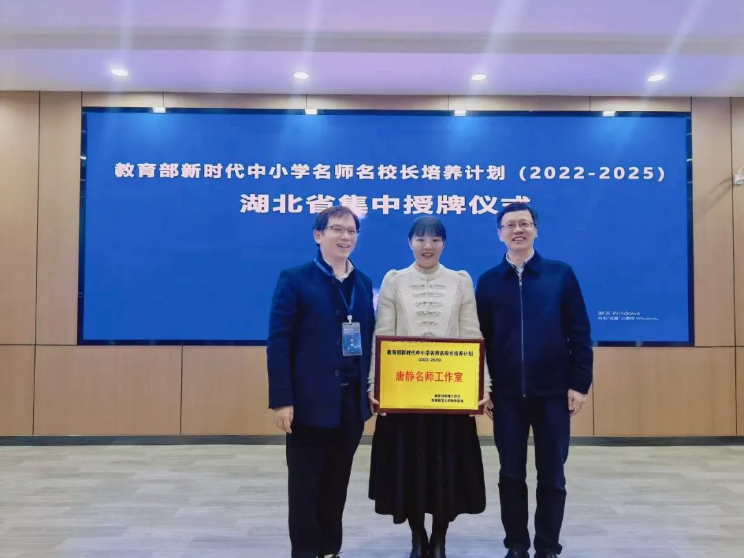 近日,教育部新时代中小学名师名校长工作室湖北省集中授牌仪式在湖北第二师范学院举行。来自硚口区的唐静老师作为教育部新时代“双名计划”名师培养对象,参加了此次授牌仪式。