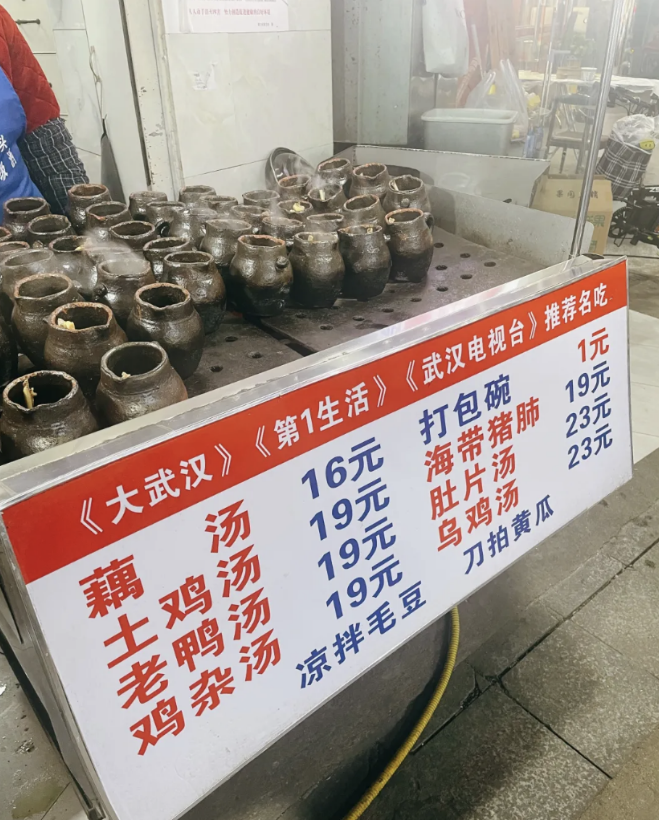 位于宝丰街与宝裕路交叉口的卢罐鸡汤,是硚口一家老字号的煨汤馆。店门口,小瓦罐铺满炉子,咕噜咕噜冒着香气。藕汤、土鸡汤、老鸭汤……几口下肚,满身的寒气就被默默消融。