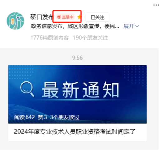 步骤二:进入“硚口发布”微信公众号,点击“直播中”,便可观看。