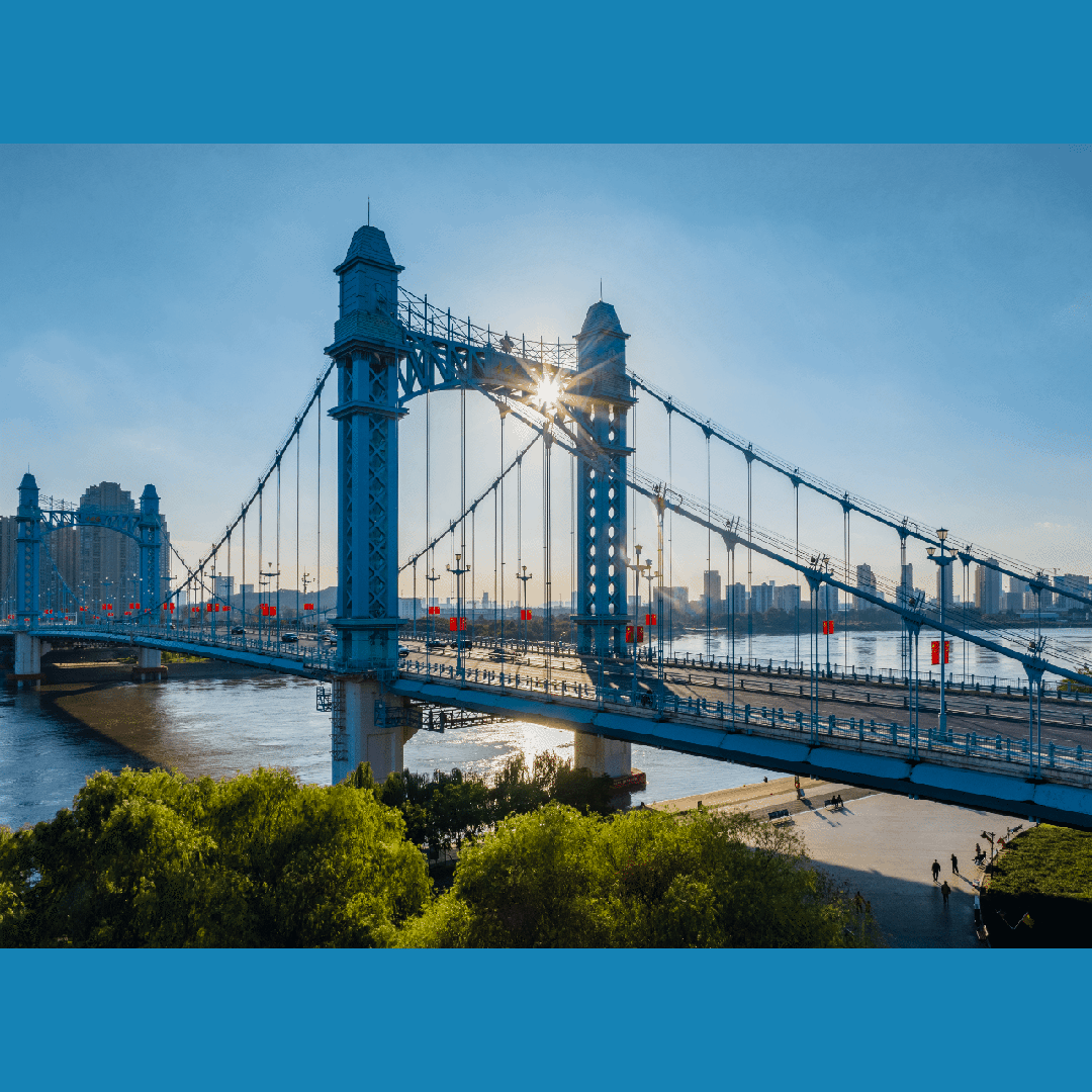 此时的桥梁拉进汉江两岸
