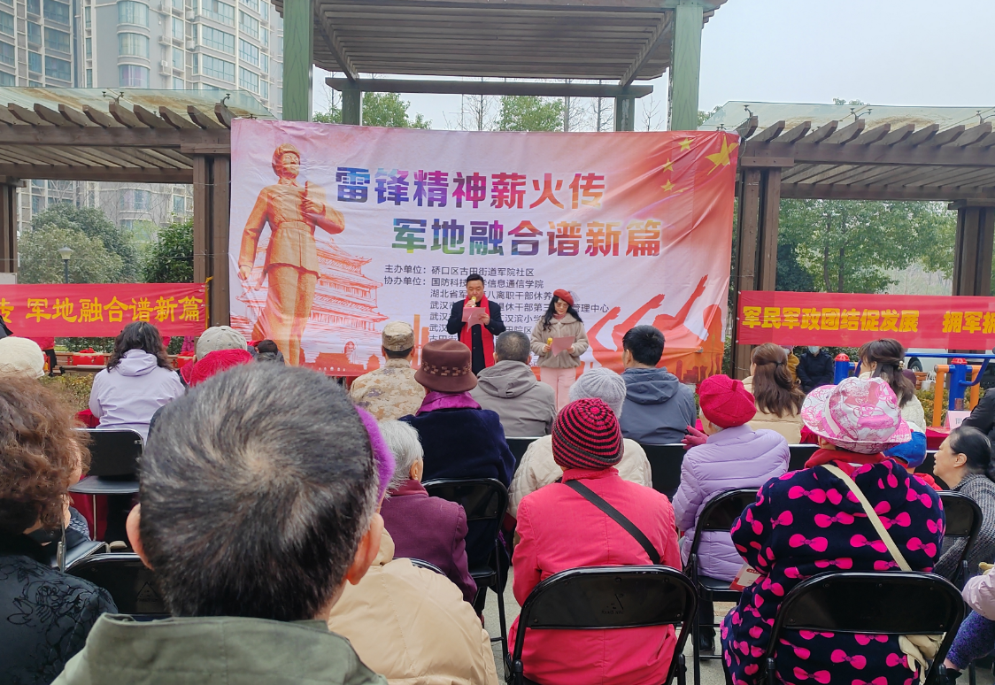 春“锋”送暖,聚“力”铸情。在第61个“学习雷锋日”来临之际,恰逢硚口区争创省“八连冠”双拥模范城第一年,为发扬“军爱民、民拥军”优良传统,深刻把握雷锋精神的时代内涵,发扬退役军人优良品质,传承志愿服务精神,营造军地共建、军民融合双拥氛围,将雷锋精神根植于心、外化于行,3月5日,硚口区退役军人事务局携手国防科技大学信息通信学院、湖北省军区第八离职干部休养所、武汉市军队离休退休干部第三服务管理中心、古田街道军院社区、武汉市硚口区崇仁汉滨小学、武汉市第四医院古田院区、古田街社区卫生服务中心、湖北省京古控股集团有限公司、武汉今天梦想商贸有限公司等单位,动员军地志愿服务队,联合开展“雷锋精神薪火传 军地融合谱新篇”志愿服务活动,大力推动双拥模范城创建活动深入开展,做雷锋精神的继承者、践行者、传播者,合力接续书写新时代的“雷锋故事”。