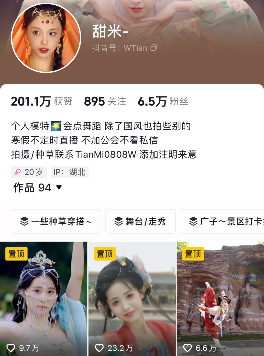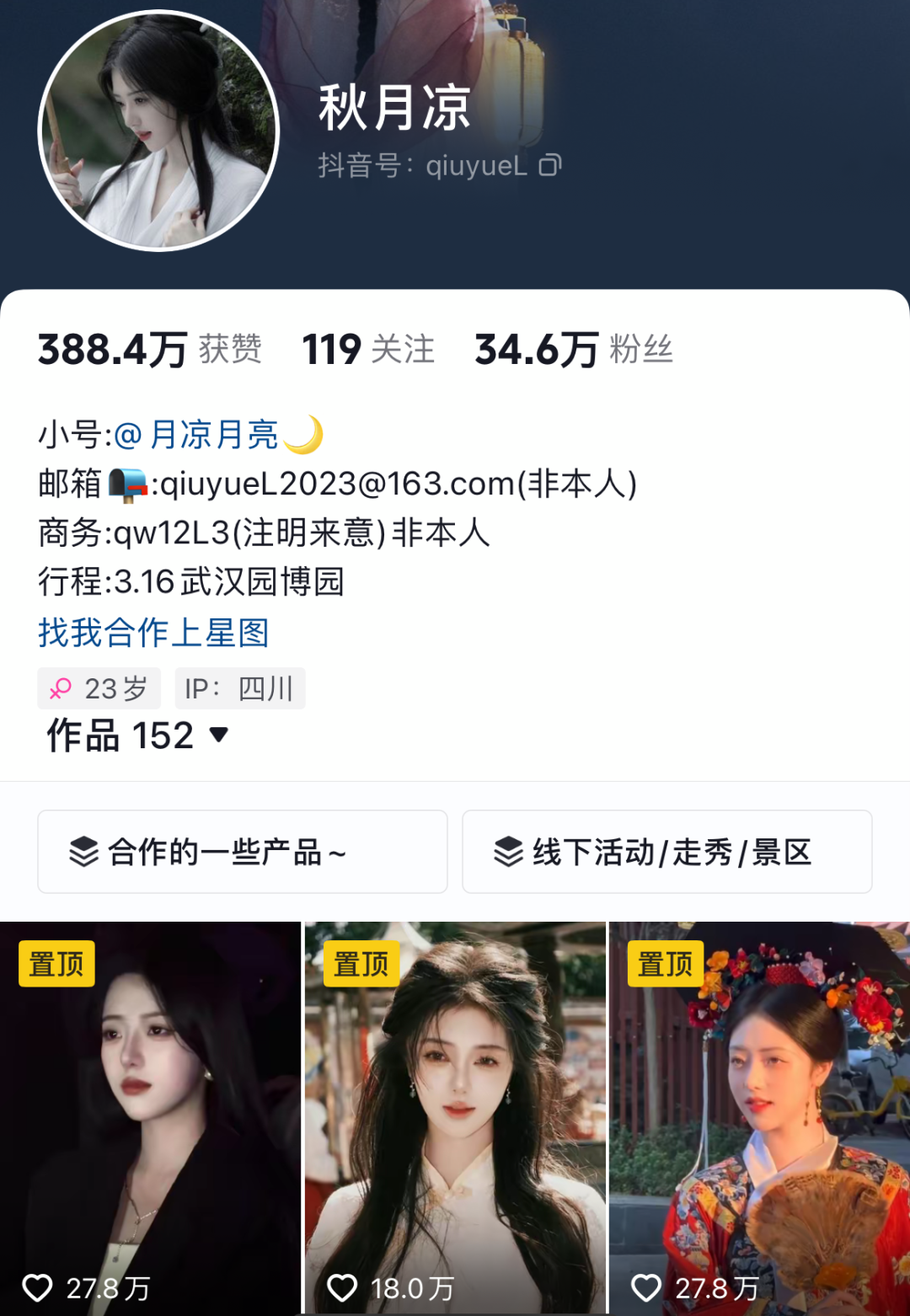 抖音@秋月凉 34.6万粉,知名古风博主。