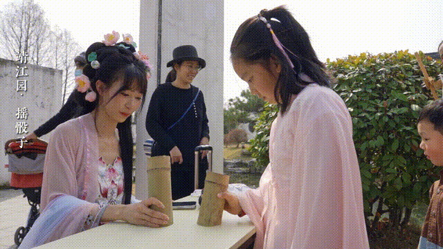 △“五花八门”展园互动,游客可拿通关卡参与点茶、糖画、香囊DIY、对诗词等汉服社团雅集活动或国风活动,获得铜币。