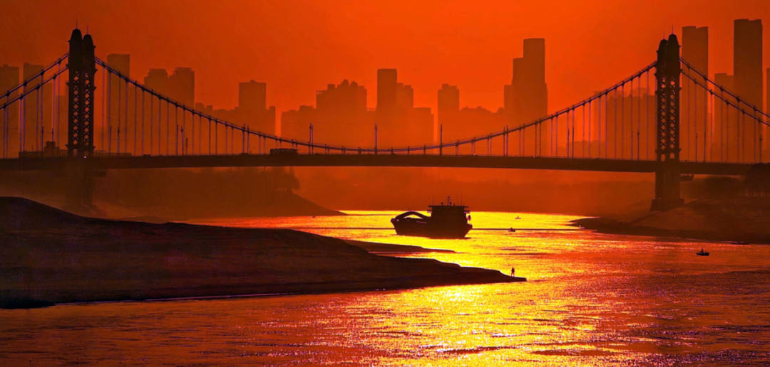 绚丽晚霞渲染了天际,浸染了江面,掩去了白日的喧嚣,浮躁的心也在此刻归于平静。汉江湾是一个观赏日出日落的好地方,沐浴在金色光芒中, 擘画人与自然和谐共生的美图。