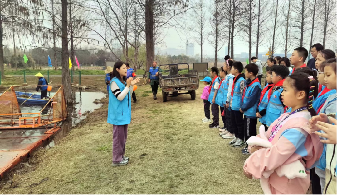 湖泊所工作人员对张毕湖公园日常生态管养及维护进行了详细介绍。围绕水体清理、水质监测、水生生物监测、科学保水等方面的科普讲解,促进队员们加深了对湖泊生态管理的认识,进一步培养了青少年生态环保意识,鼓励大家积极参与爱水护水行动。