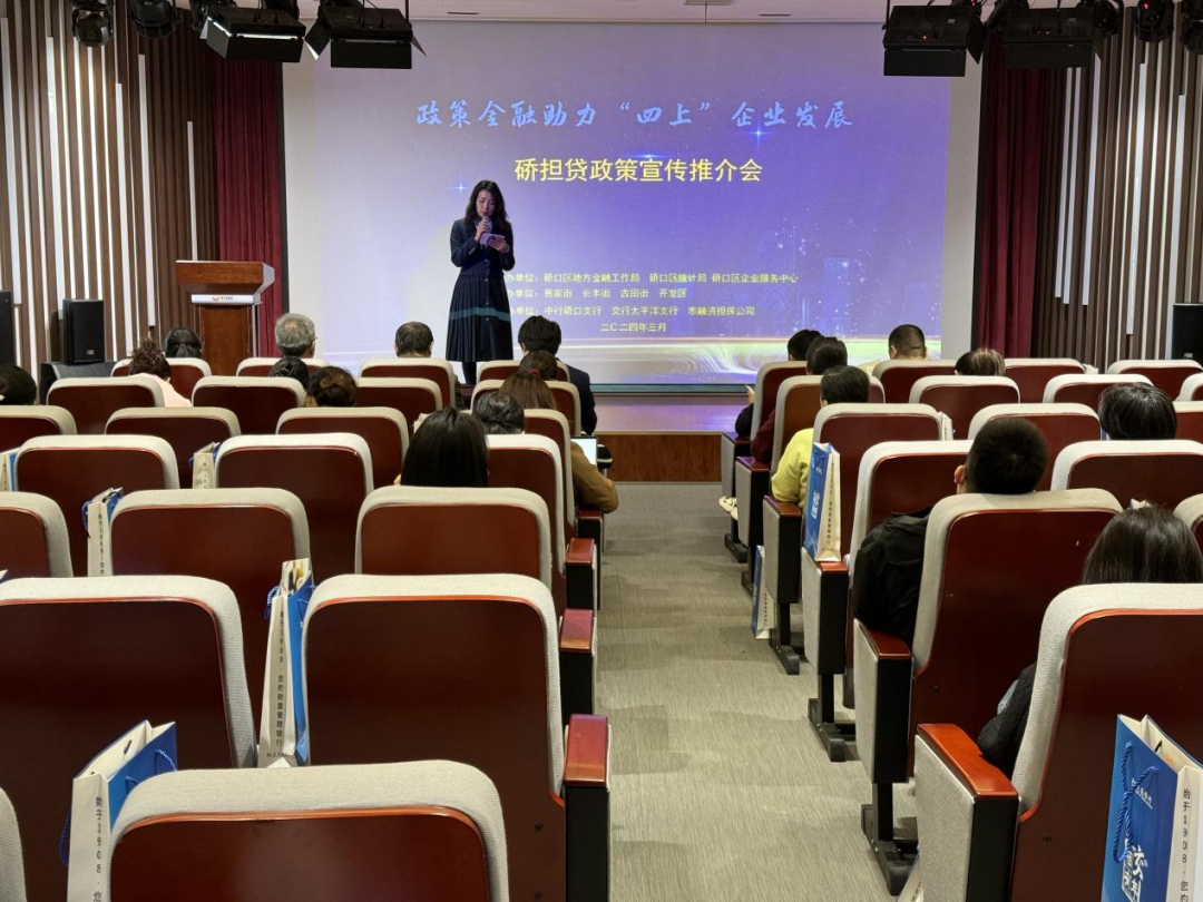 春风送暖,万物生长。近日,硚口区地方金融工作局、区统计局、区企业服务中心主办的“硚担贷”政策宣讲会成功召开。开发区、易家街道、古田街道、长丰街道、中国银行、交通银行、市融担公司等金融机构代表,以及60多家“四上”小微企业参会。