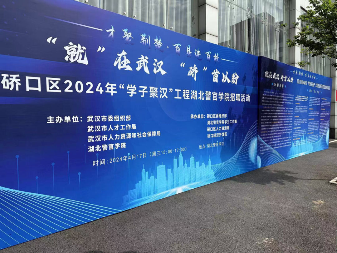 为深入贯彻落实党的二十大精神,持续推进“学子聚汉”工程,促进高校学子高质量充分就业,昨日,由武汉市委组织部、武汉市人才工作局、武汉市人力资源和社会保障局、湖北警官学院主办,硚口区委组织部、湖北警官学院学生工作处、硚口区人力资源局、硚口经济开发区承办的“才聚荆楚·百县进百校”暨“就在武汉·硚首以盼”2024年“学子聚汉”工程湖北警官学院招聘活动成功举办,助力企业“求贤”与学子“求职”双向奔赴。