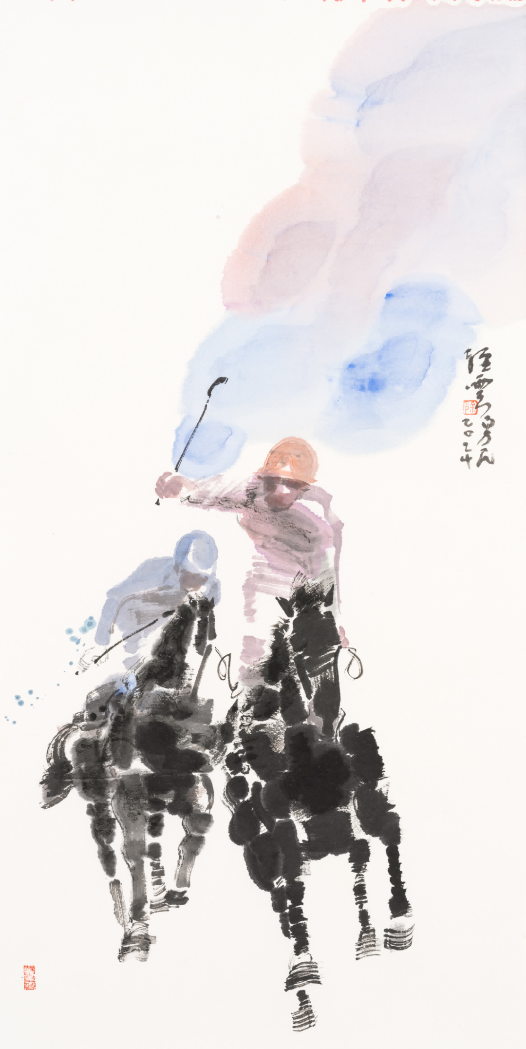 画过唐人打马球的场景,