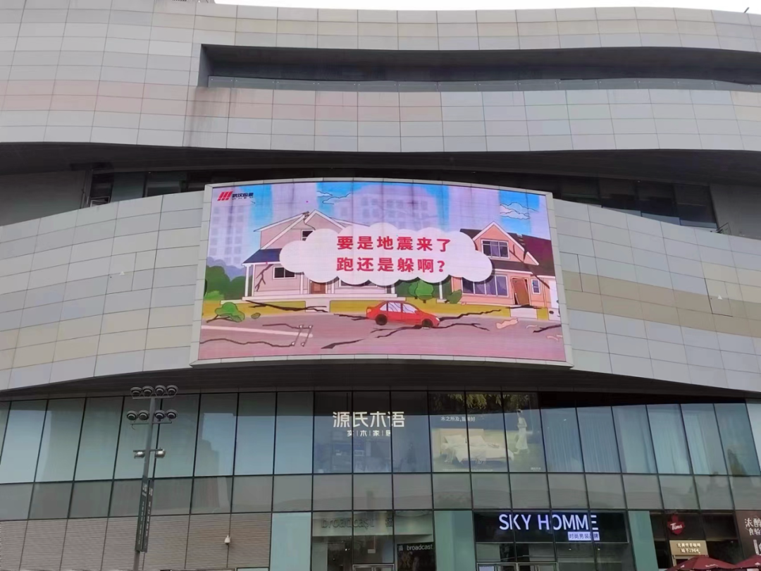 ▲ 5月11日起,硚口区商业广场大屏滚动播放防灾减灾宣传视频。